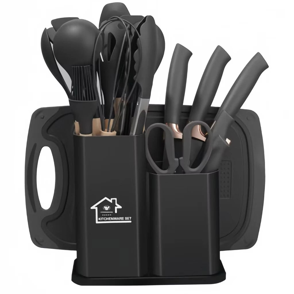 🍳 Kit de Utensílios de Cozinha Luxo – 19 Peças com Tábua em Silicone